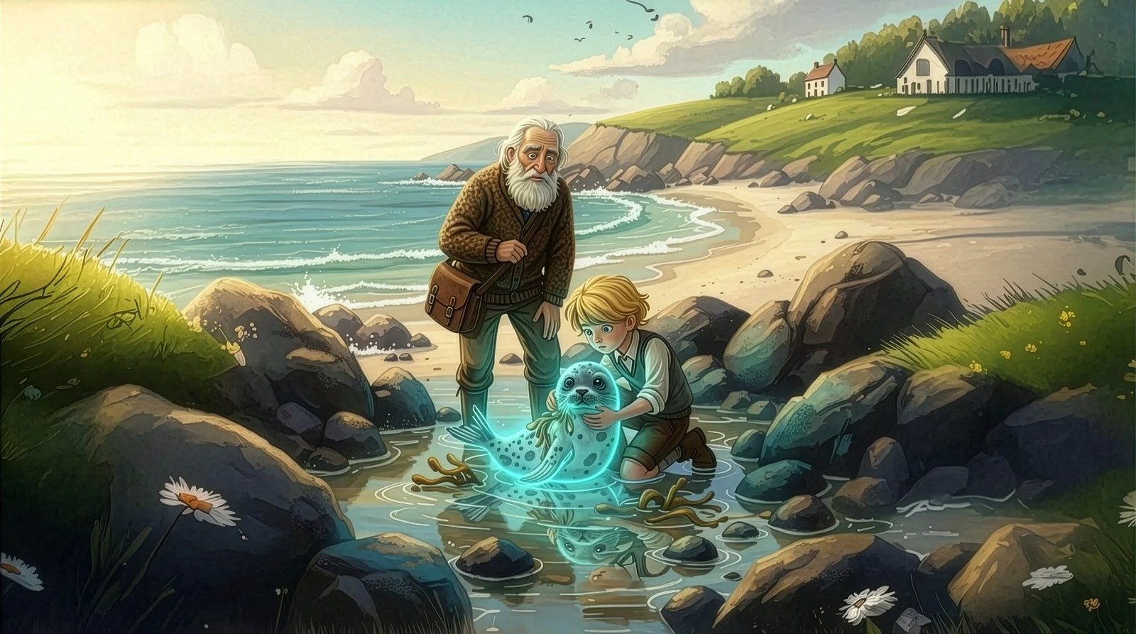 On the wild Pembrokeshire coast in 1945, a rescued grey seal pup named Niffy-Nooh washes ashore at Stackpole Estate — where the sea meets the lakes. He glows blue when he's anxious, which is often.